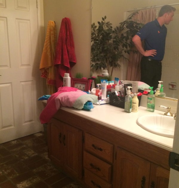 Hi friends! After taking some pictures of our guest bathroom recently, I realized it was about time I shared my tips for updating a bathroom on a budget! We aren’t talking a major overhaul here, just a few basics that can take a bathroom from total drab to mostly fab. Here are the before shots of our guest bath. These were taken before we moved in!