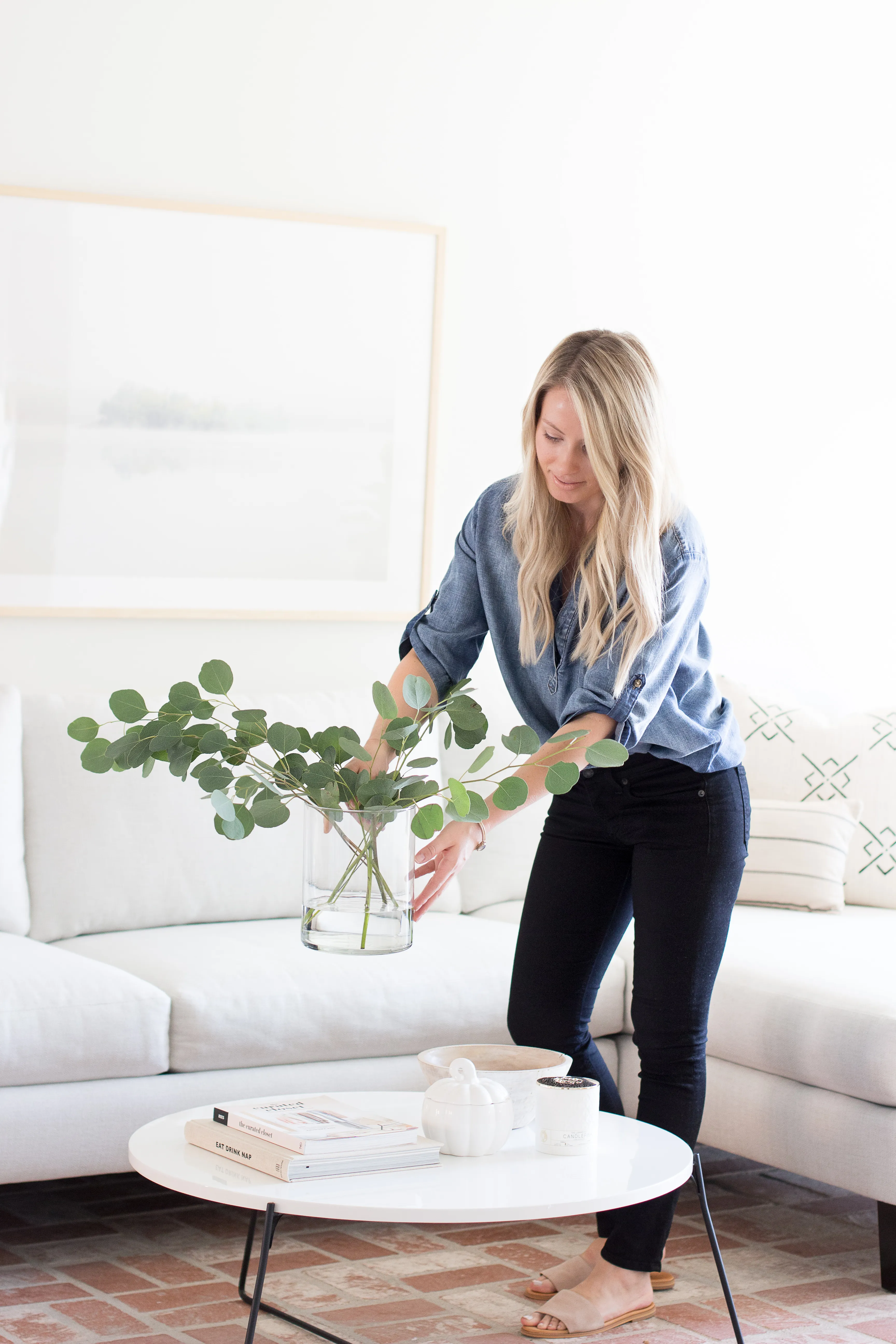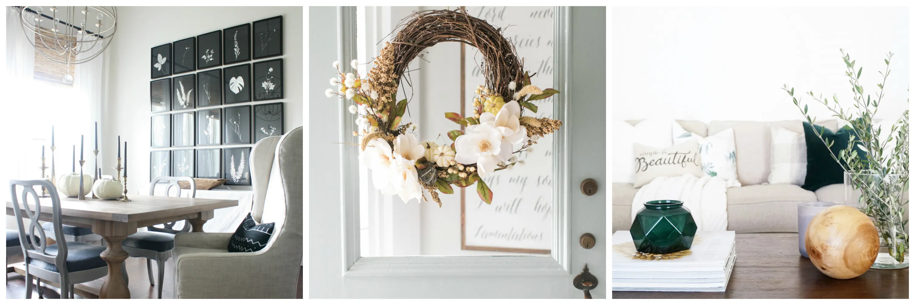 Fall. Is. Here! They say that true happiness comes from within. I suggest that true happiness comes from within the months of September-December ;). Pumpkin candles, cozy sweaters, and crisp air are among the many mood boosters that come with this new season. I know so many of you have been busy “fall-ifying” your homes, and I am loving all the seasonal decor! This year I have kept things simple by adding new artwork, candles, greenery, and neutral pumpkins in an attempt to embrace the season with simplicity. Which leads me to… the Beauty in Simplicity Fall Home Tour!