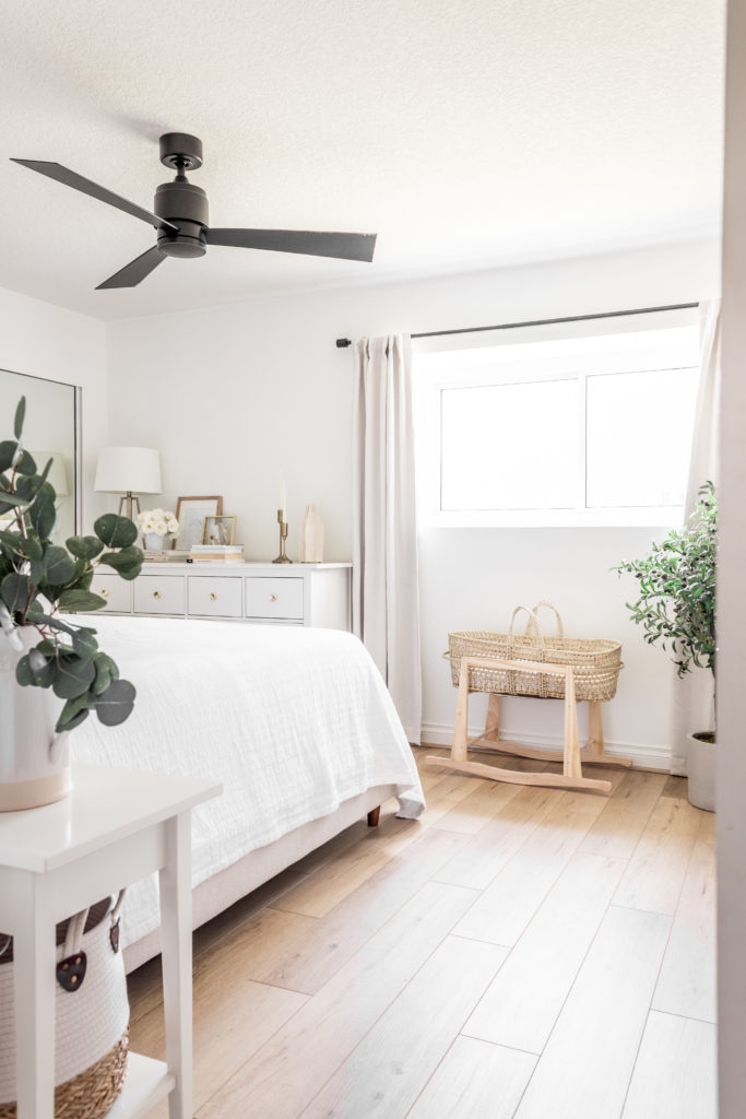 I also decided to style our dresser on a whim and love how it turned out! When we installed the floors last week we moved the dresser down towards the closet. Now that it’s against the wall instead of the window I was able to style it which was so fun!