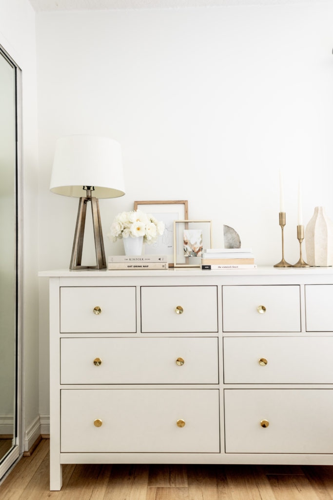 Our dresser is from IKEA, which I’m not able to link for you so I included it’s twin that you can buy online. I also linked all the decor I used to style our dresser! Most of it should be there, but since I just used what I had on hand not everything is available online… In which case I always link similar items for you to choose from.