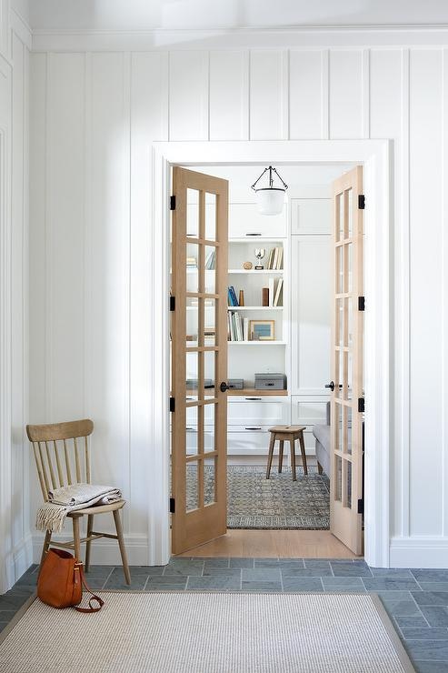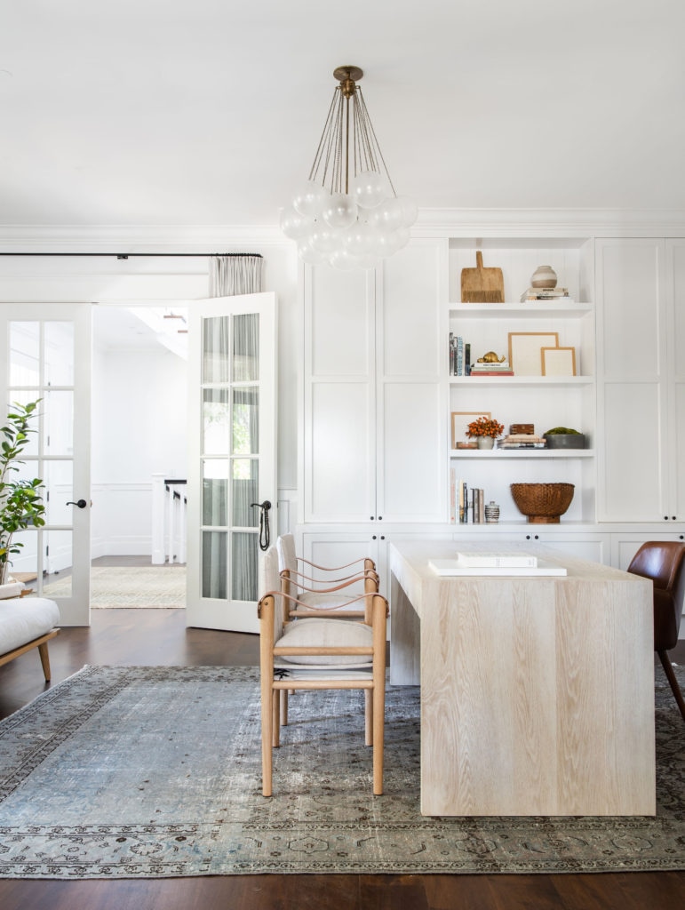 I’m currently deciding between french doors or new built-ins. This photo further convinces me how awesome it would be to have doors in our office! Love the floors to ceiling windows here. Let’s in so much light! I really want to add doors, but it would limit our options for styling furniture and eliminate the back desk I was hoping to add. Jordan works from home so we both need a place to work! What do you think, french doors or built-ins and a back desk?