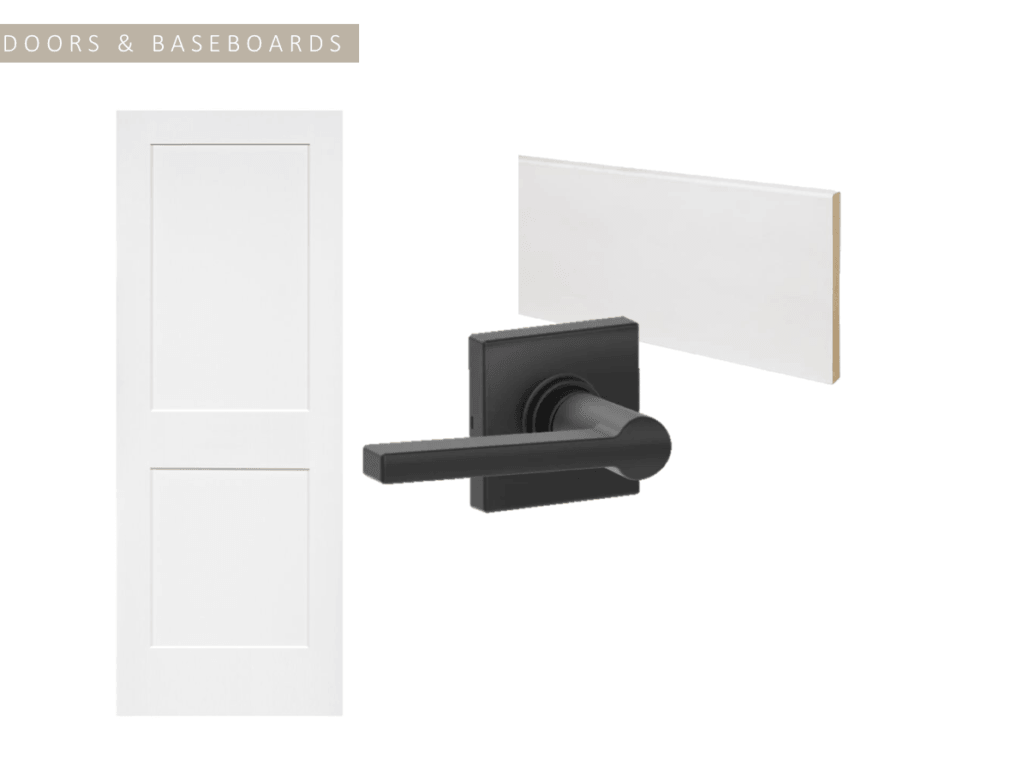 The Plan: Add new 2 panel doors and update the trim and baseboards throughout the house.