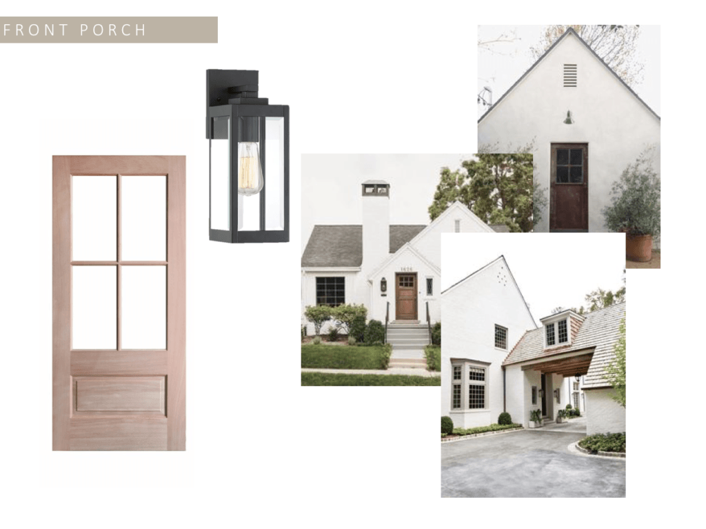 The Plan: Add a front door, new paint, and wood accents.