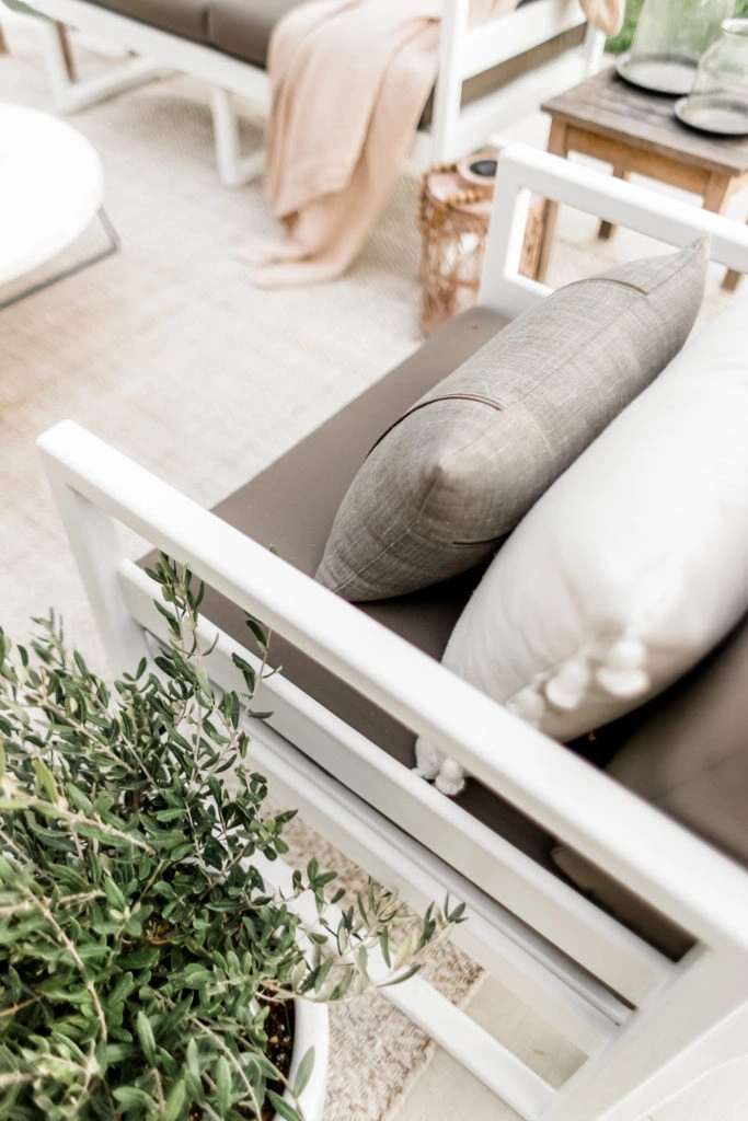 Wayfair makes it so easy to style your outdoor space with all of their amazing furniture finds. Their wide selection of quality products will help bring your outdoor vision to life. Today I’m featuring this Kimble 4 Piece Sofa set, in white and taupe, and love the look and feel! It’s so comfy to sit on and I can tell the cushions are built to withstand the outdoor elements.