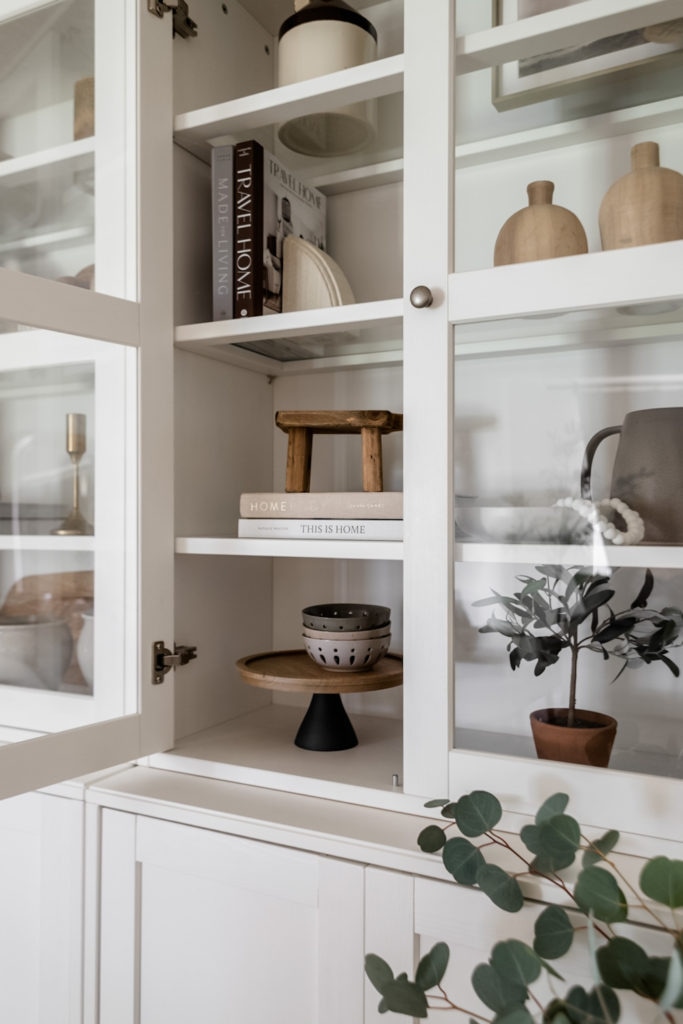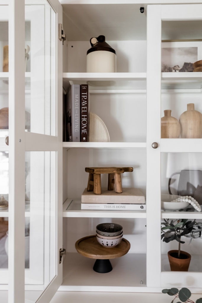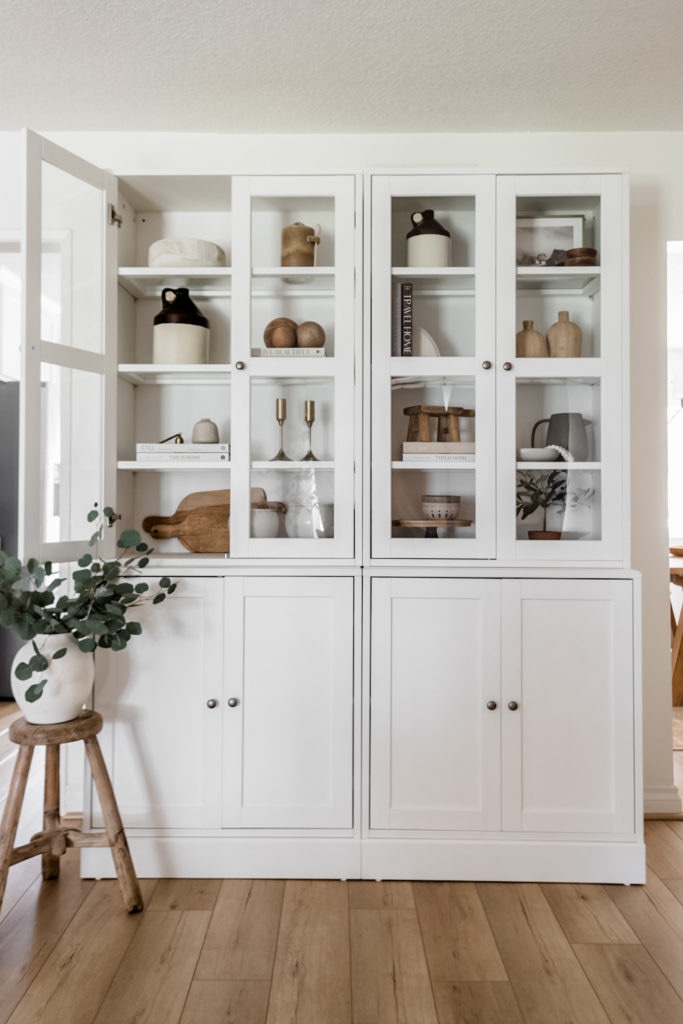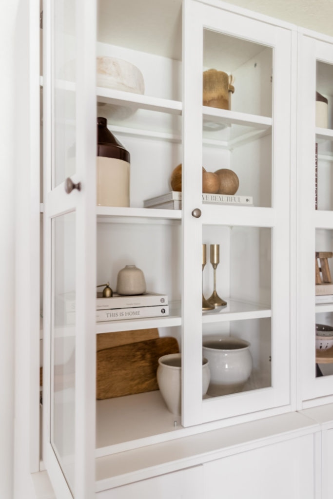 I was browsing Pinterest and saw the HAVSTA Storage combination w/glass doors and it was PERFECT! I don’t typically shop at IKEA since I try to purchase things that are easy for my readers to access and purchase online, but I made an exception this time 😉