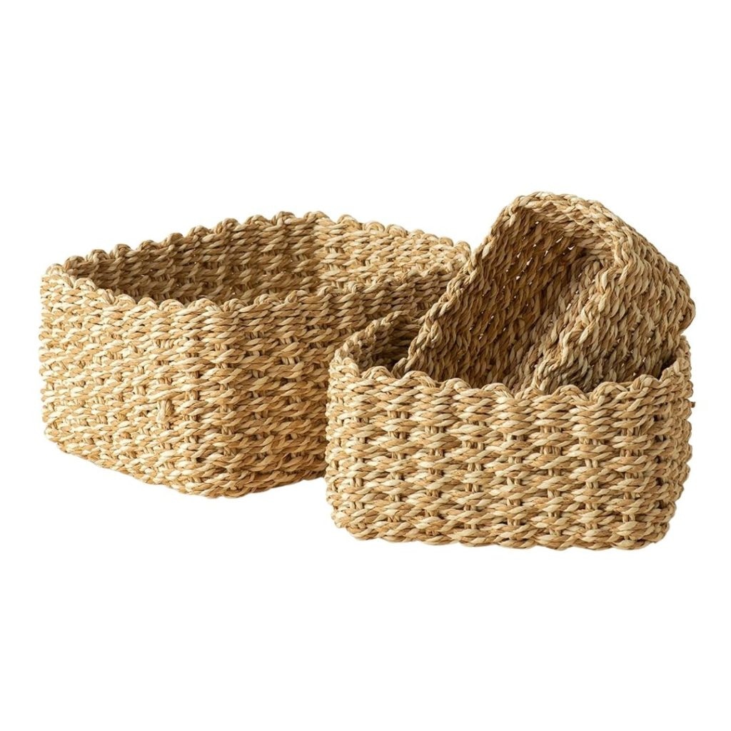 I ordered these baskets to sprinkle in on shelves and countertops. They come in various colors and have a cute scalloped detail on top!