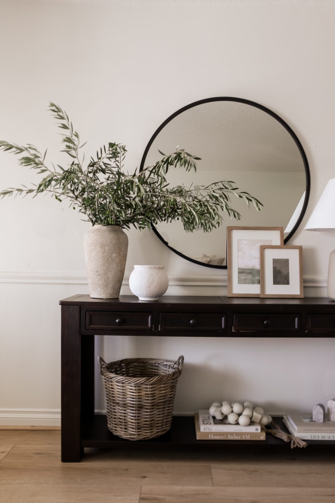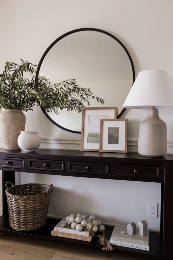I saw this console table a few weeks ago when I was browsing the Home Depot website, and the stunning design and price point caught my eye! Entryway designs are one of my top requested content ideas, so I wanted to feature this table for you! Isn’t it so stunning?