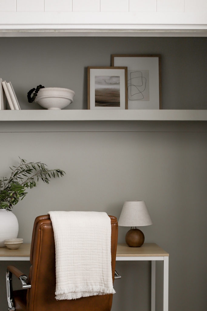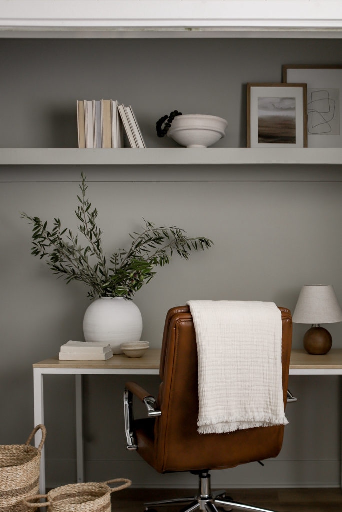 We recently had our interior painted and I went with Sherwin Williams Jogging Path in the closet… and I am so happy I did! It really adds a little extra usual interest here. Totally makes the space!