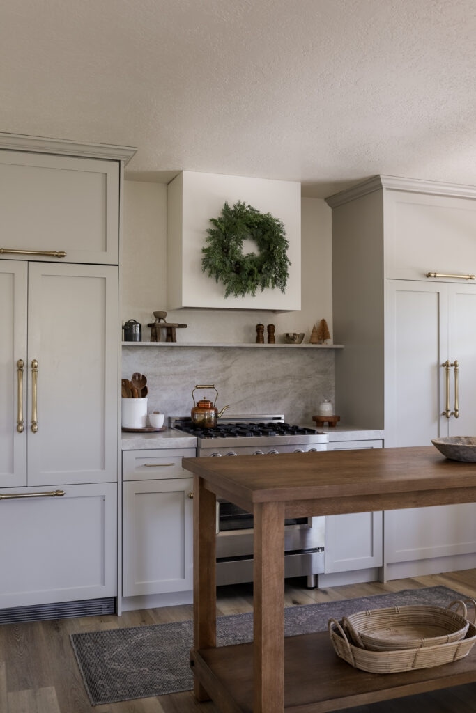 Next, I added a few decorative holiday items like mini trees and gold bowls. Incorporating simple pieces like this is such a simple way to make your home feel more festive… and makes cooking more fun too!