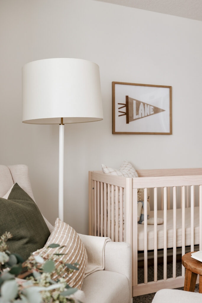 The Monroe Floor Lamp is the perfect addition to baby Lane’s nursery. This specific one is the ‘Burnished Brass GW’ and I love the white and brass combination! It makes such a statement with its simple yet striking design.