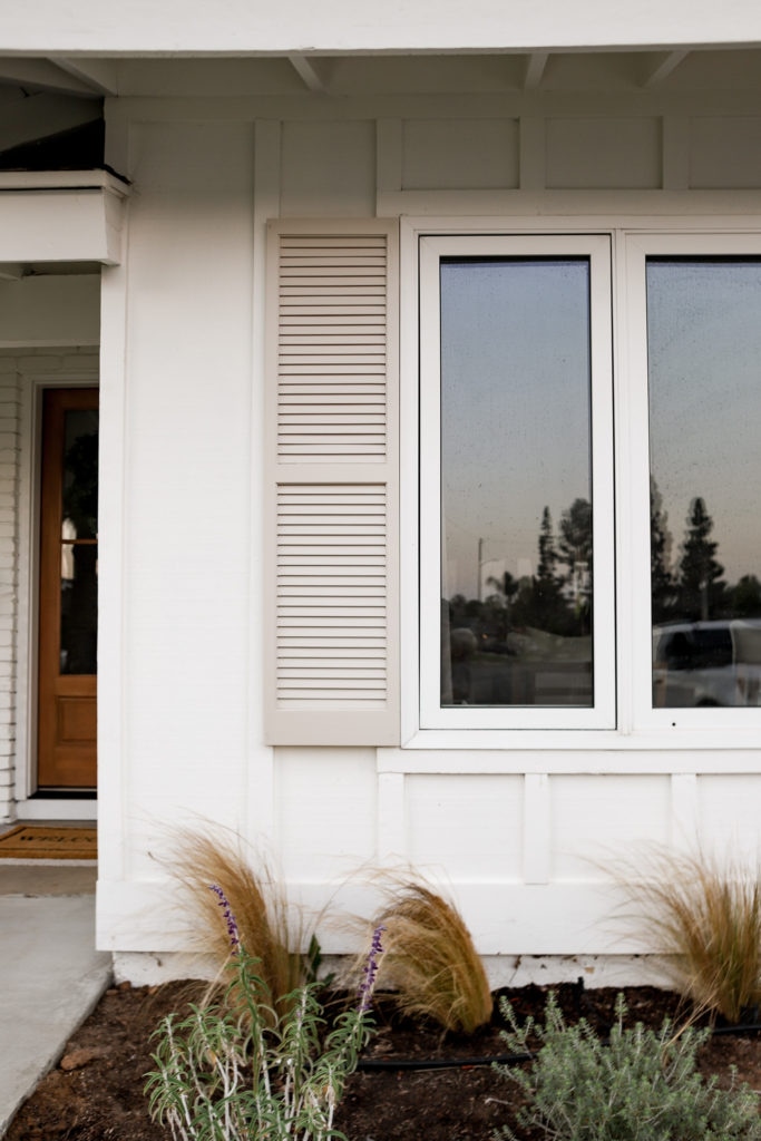 This is a great neutral greige/putty color. It would be perfect for cabinets or accents like these shutters! The siding seen here is Dunn Edwards ‘Whisper’ (flat), a true bright white!