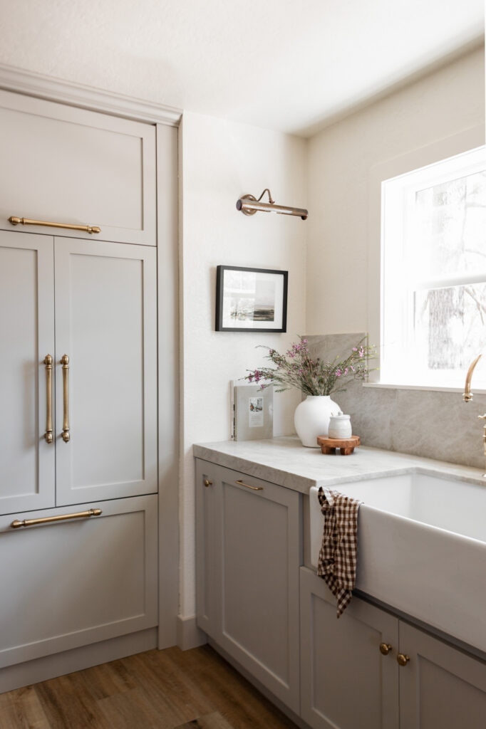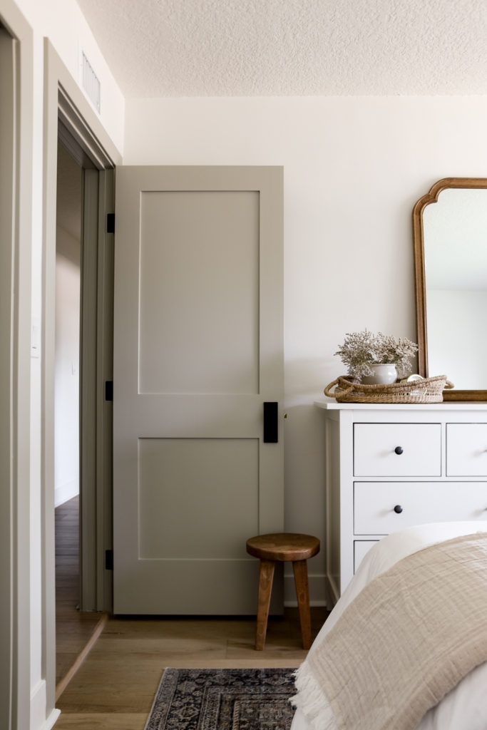 All of the doors and some millwork throughout our home are painted in Sherwin Williams Jogging Path (eggshell). You can see it in Weston’s room and our primary bathroom too.