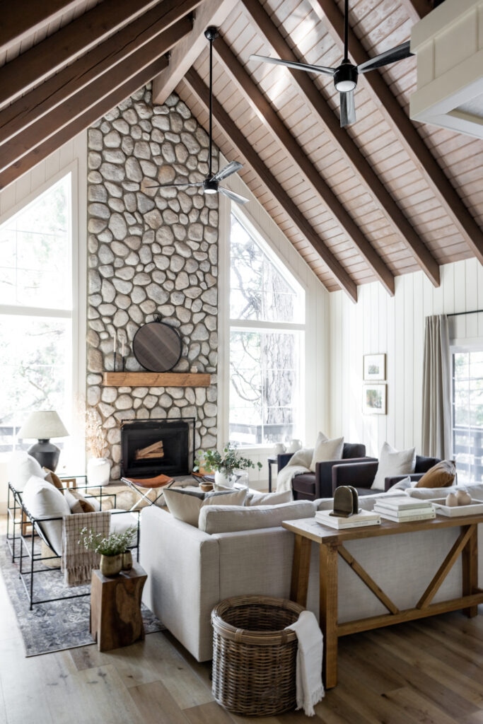 All of the walls and trim in our lake house are Benjamin Moore White Dove at 75% (eggshell). This color is right up there with Swiss Coffee as an all-time favorite white paint color! It’s a soft white with an undertone that leans more green than pink.