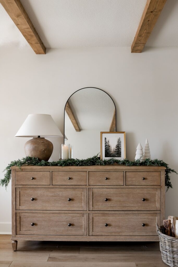 click to shop – moody pines art (pictured in 11×14″ classic gold frame with mat) / dresser & decor sources