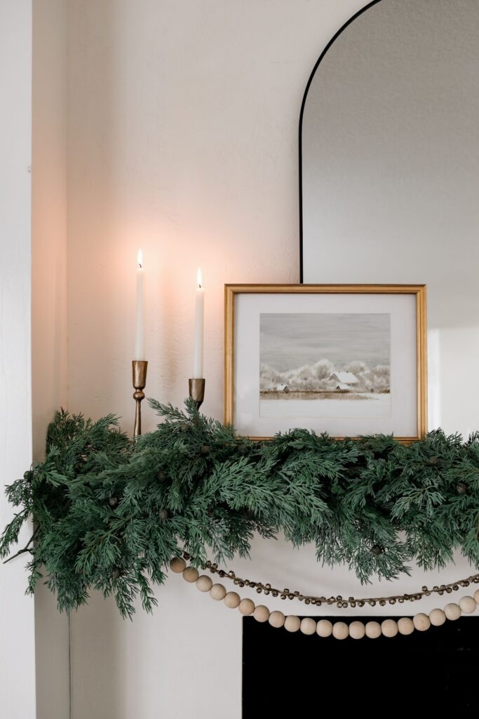 click to shop – pine sketch art (pictured in 40×30″ black float frame canvas) / mantel sources