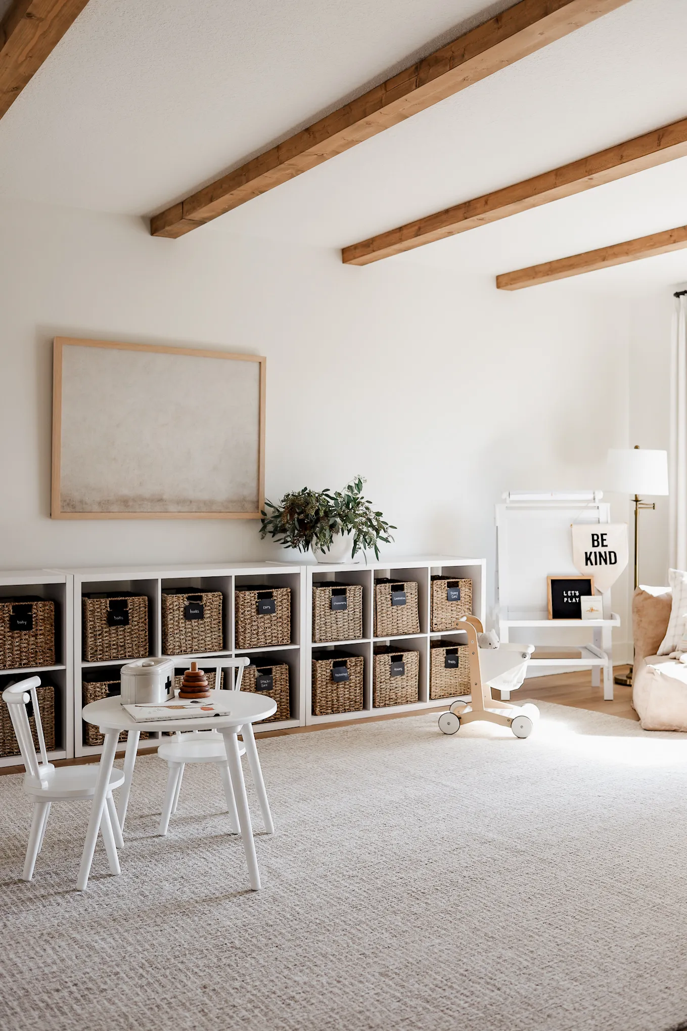 Designing a playroom for your little ones requires careful consideration of both functionality and aesthetics. I found so many amazing pieces online at Wayfair! They offer a great selection of kids’ playroom furniture and organization essentials that can transform any space into a haven of creativity and fun. In today’s post, I’ll outline some of my must-have items, including storage solutions, the perfect playroom rug, kids’ lounge seating, an easel, and a play table, all available on Wayfair!
