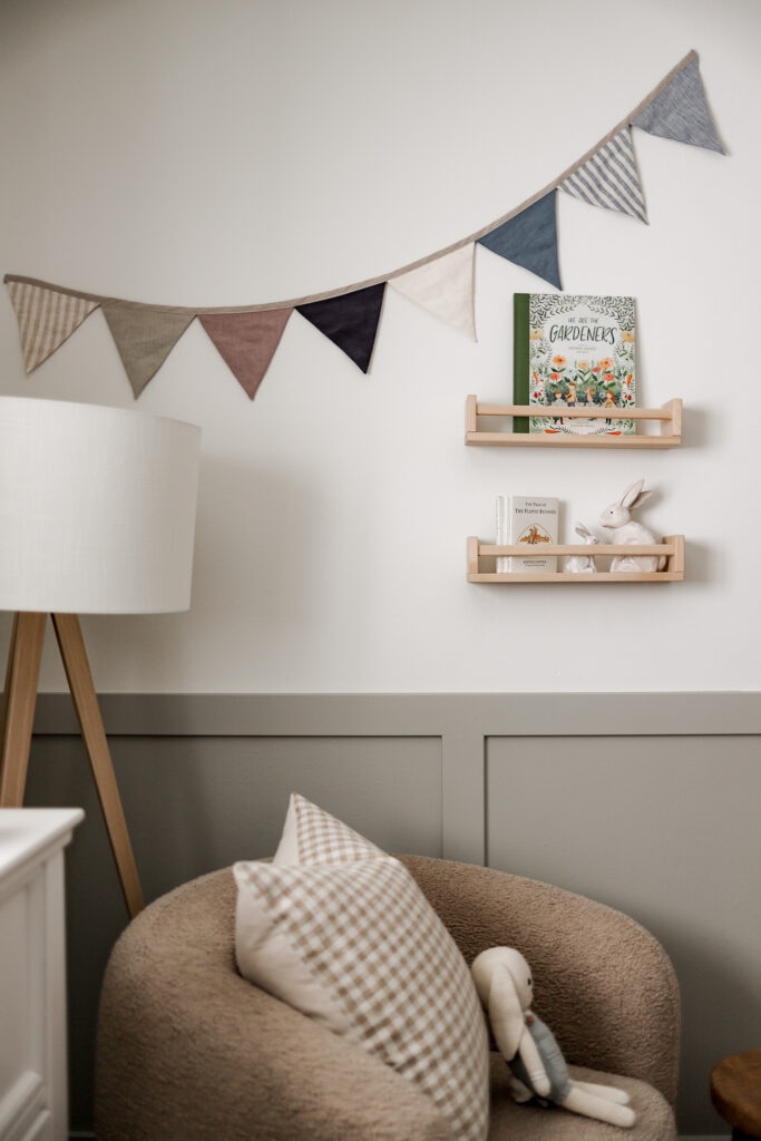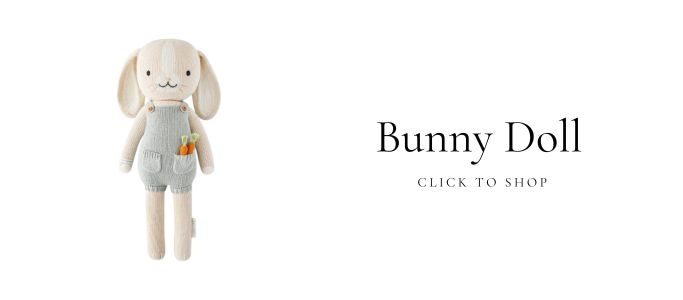 Soft, cuddly stuffies in the shape of springtime creatures such as lambs, chicks, and, of course, bunnies, add a playful and comforting element to your child’s room. These huggable companions not only enhance the spring theme but also provide comfort and companionship during playtime and bedtime. Weston is loving this cute Cuddle & Kind doll.