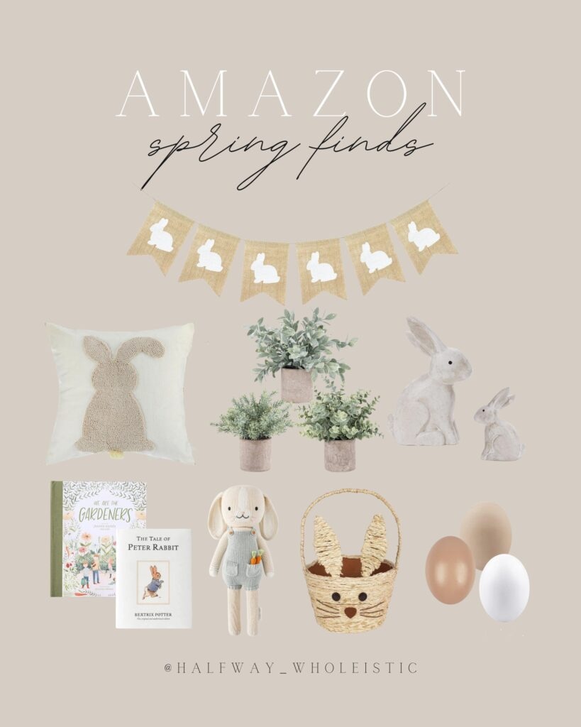 I recently ordered some spring decor for the boys’ rooms on Amazon! Everything is so neutral and cute, and affordable too! From faux plants to neutral Easter eggs, wood bunnies to bunny banners, I’ve curated a list of amazing spring decor items to infuse joy and warmth into your little one’s room or any corner of your home.