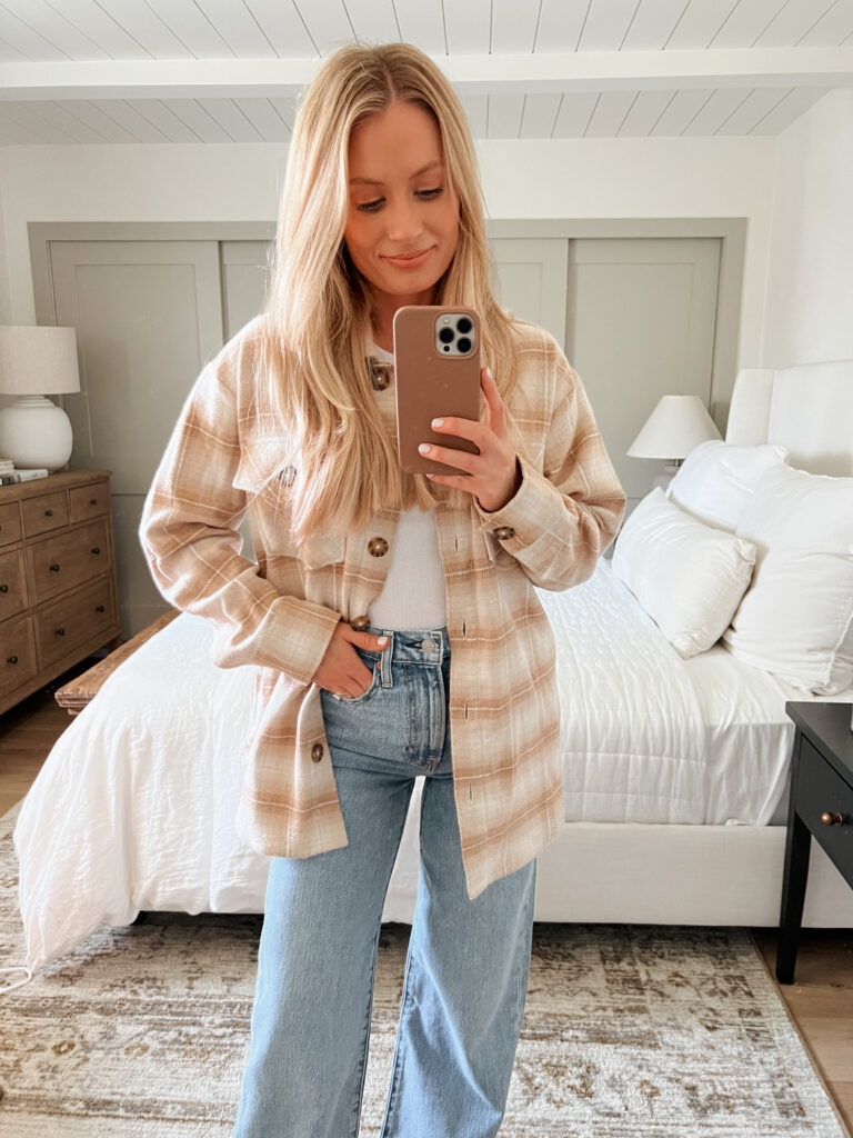 - Outerwear: A tailored blazer, a denim jacket, and a cozy cardigan.