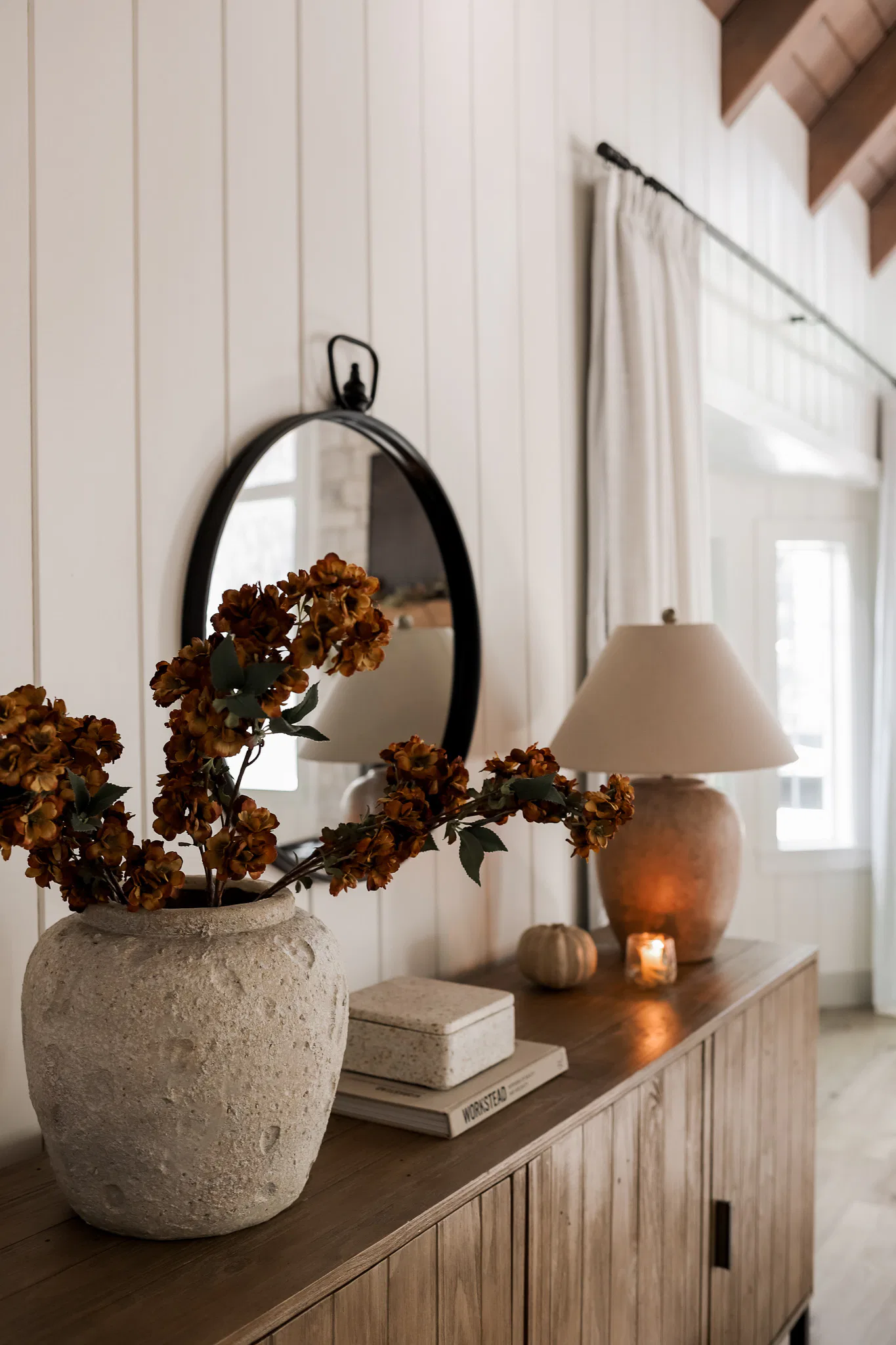 moon rock vase | fall stems | wood pumpkin | fall candle