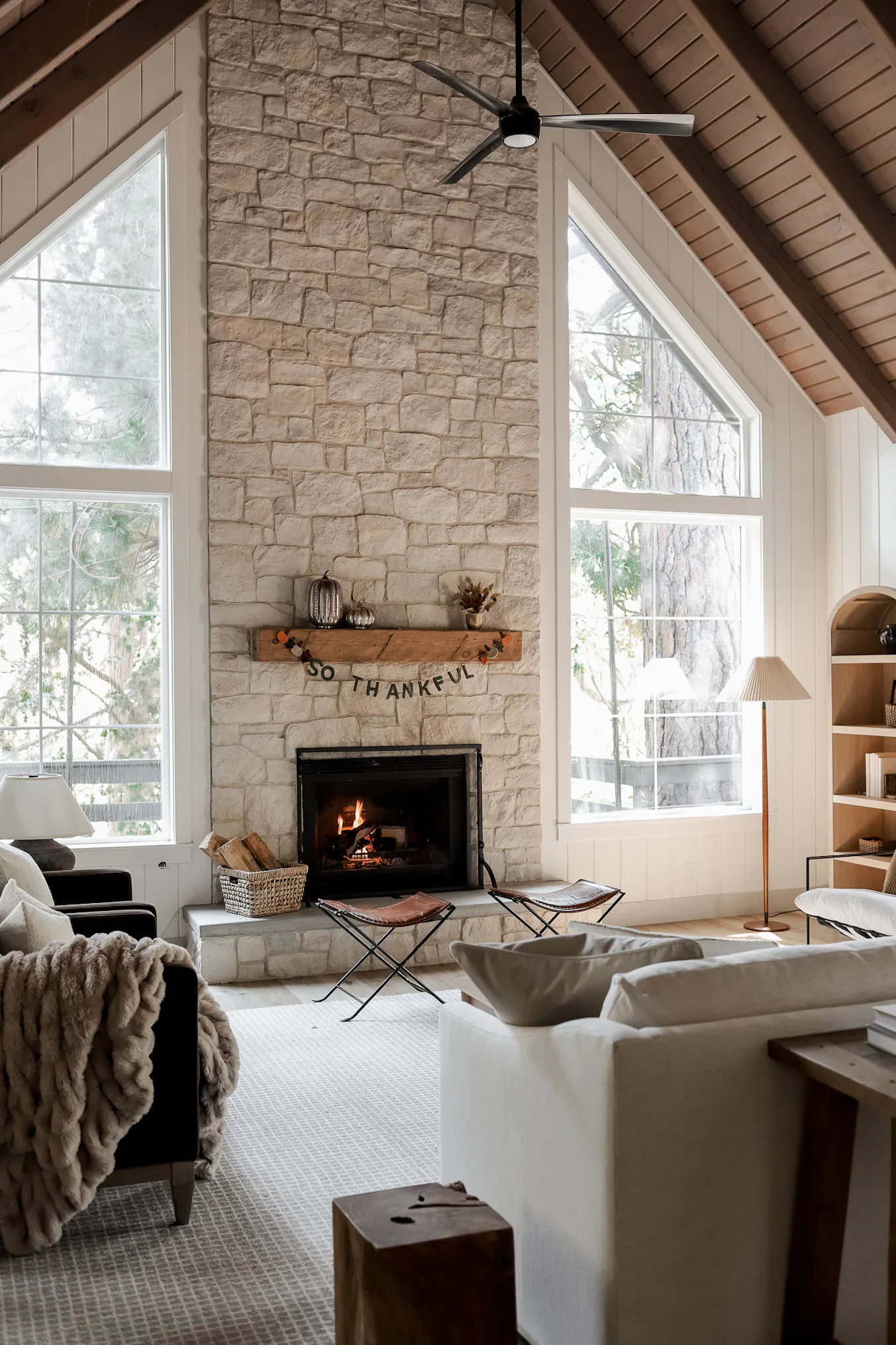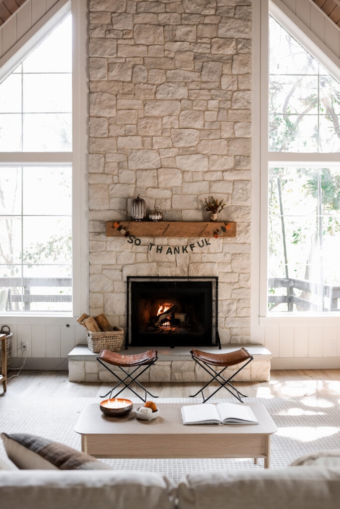 Let’s start with my favorite spot to decorate — the mantel. I strung up a gorgeous “So Thankful” garland, which instantly sets the tone for all things gratitude this season. It’s the perfect reminder to pause and appreciate the little things.
