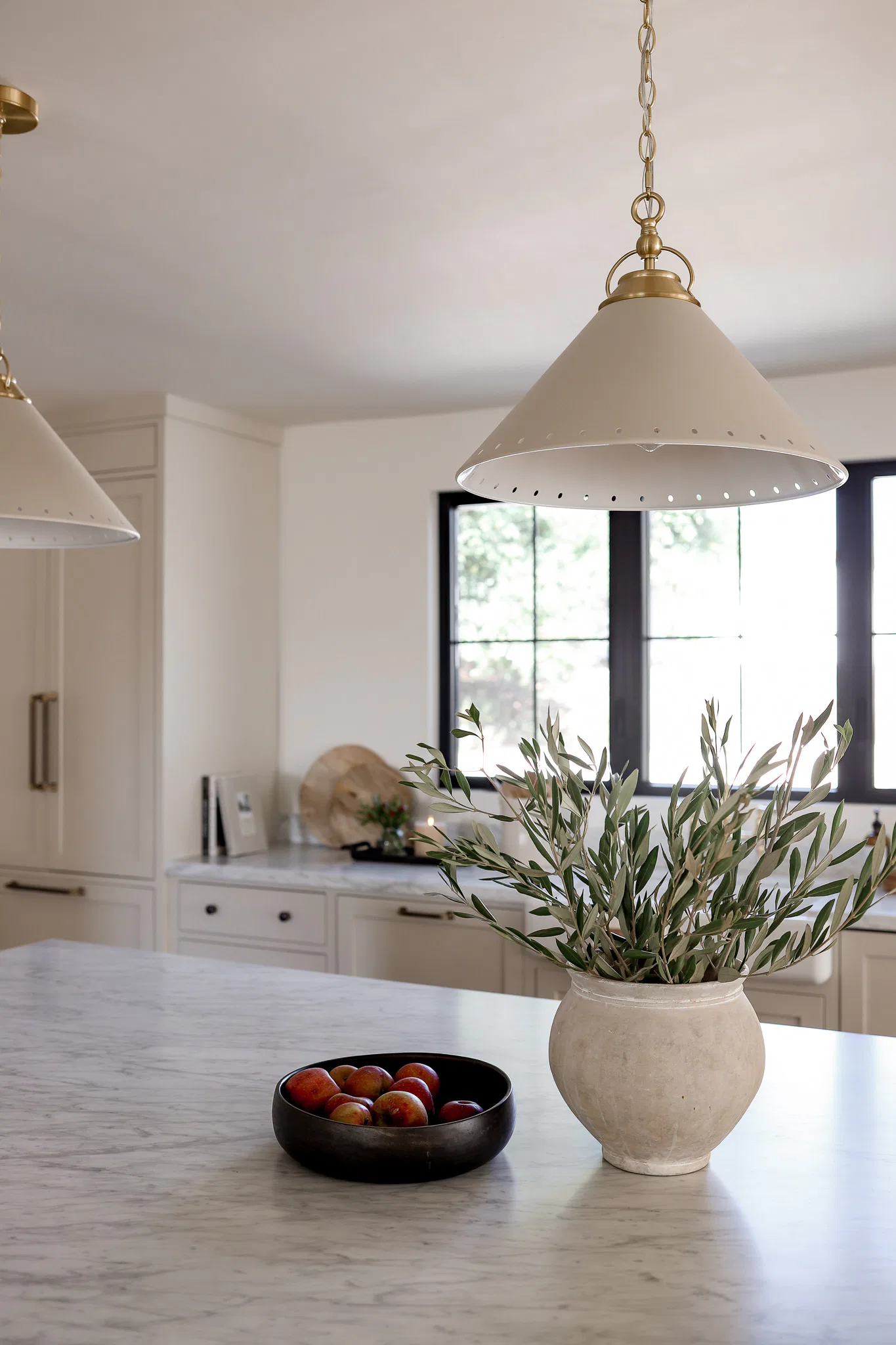 Lighting is such an important part of setting the tone for a space, and our Ada Enamel Pendant Lights do just that. Their clean, simple design adds a modern touch, while the enamel finish offers a timeless appeal. These pendants provide a warm, inviting glow that perfectly illuminates our island and adds to the cozy ambiance we wanted to achieve.