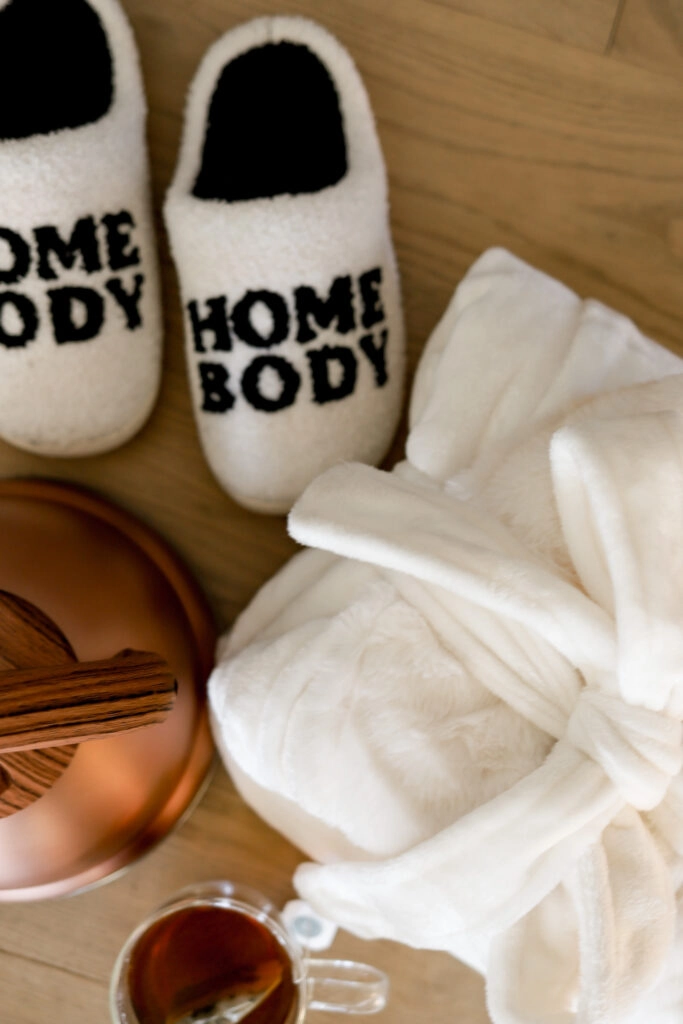 Homebody Slippers: A pair of plush slippers is a must-have for anyone who loves to lounge. These slippers are stylish, warm, and perfect for relaxing at home. (available in store)