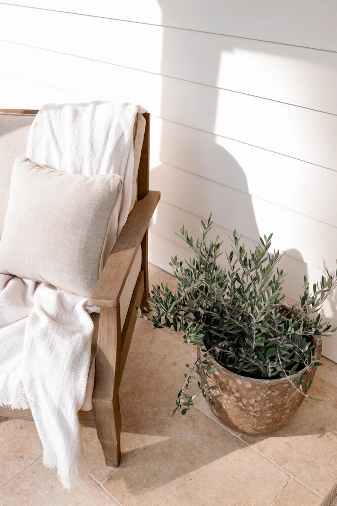 click to shop: limestone pavers | chair | throw blanket