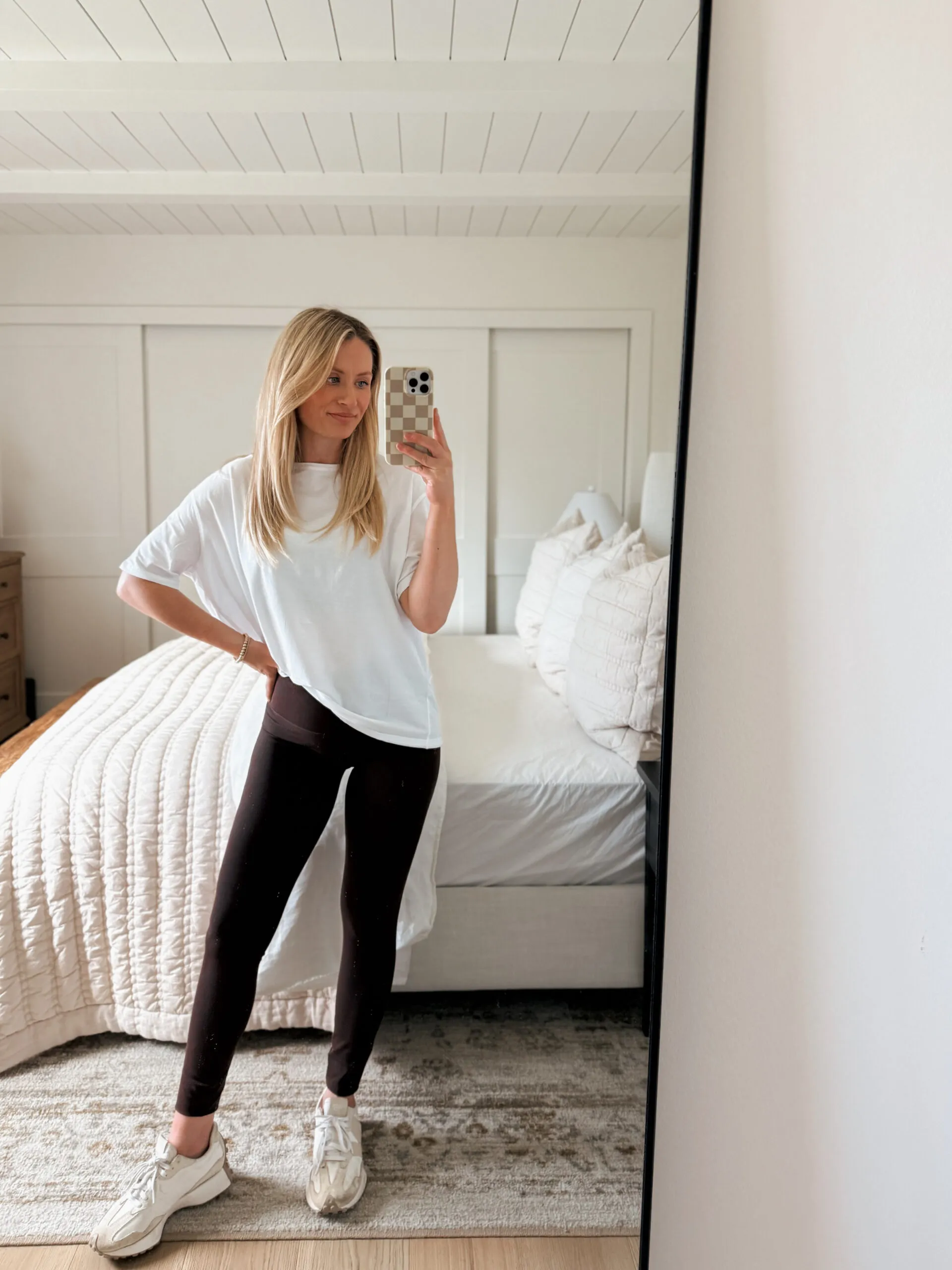 Athleisure can still feel elevated—especially when the pieces are simple, well-cut, and high-quality. I love this loose fit tee paired with high-rise leggings and a supportive racerback bra for school drop-off, workouts, or just lounging in style.