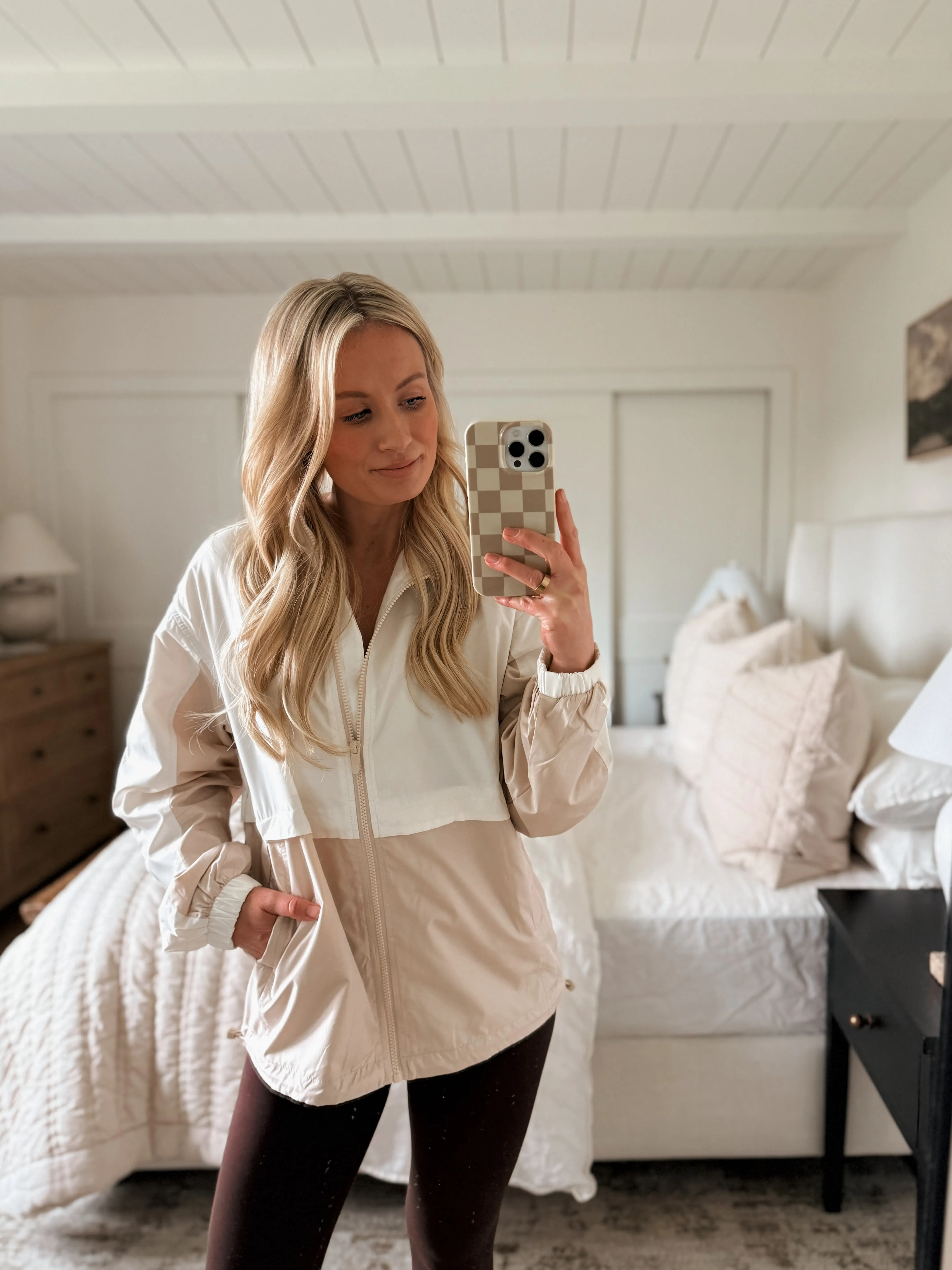 A lightweight windbreaker is one of those unexpected layering heroes. It adds an athletic touch to any look and is perfect for transitional weather. I love throwing it over a tank and leggings or even layering it with jeans and sneakers.