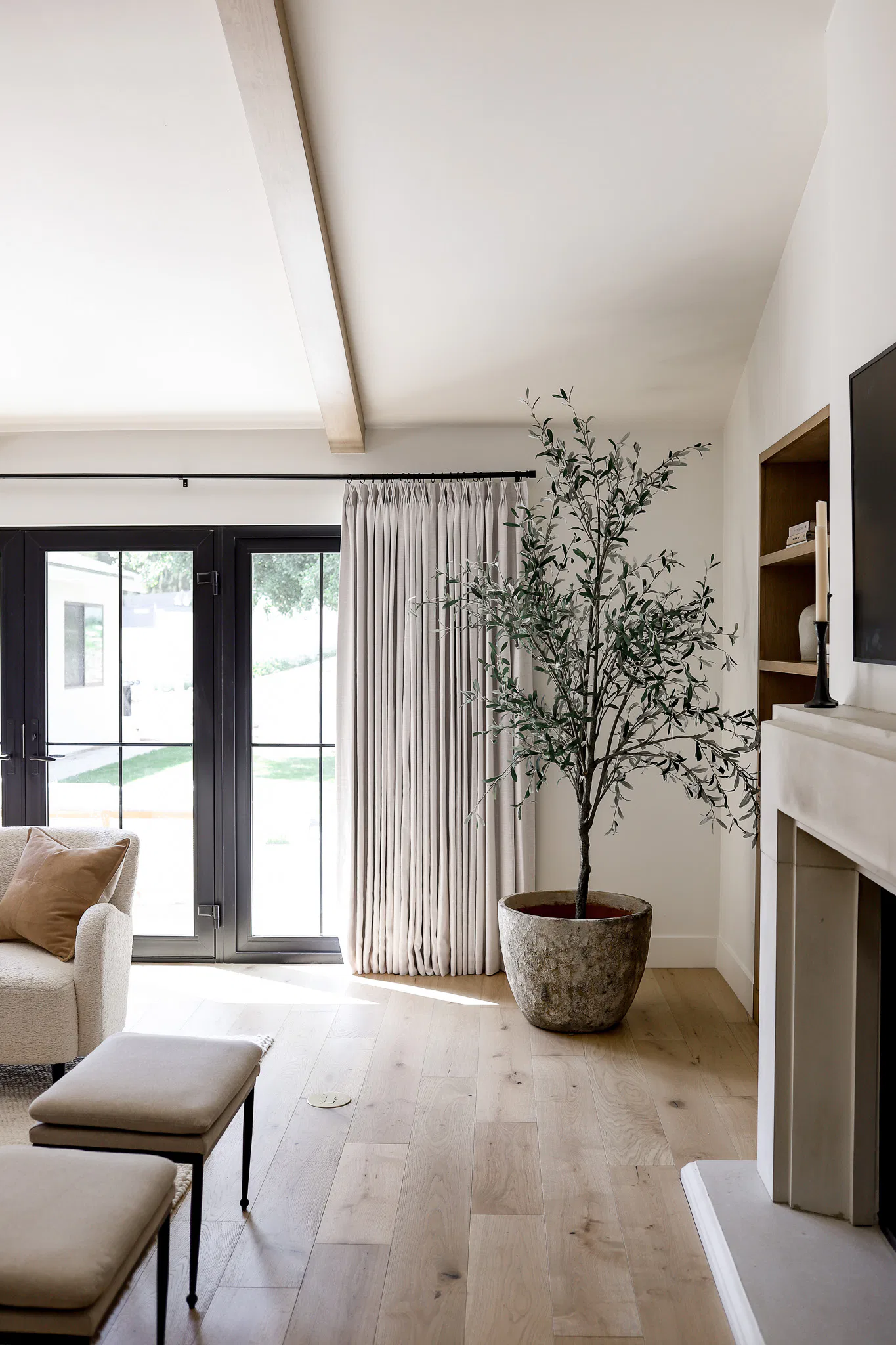 Okay, I have to rave about these new curtains I got—I’m loving them. They’re the Lille Linen Blackout in Beige White, and they look so high-end. The fabric is light and airy, but still feels super luxe, and I went with the Triple French Pleat, which totally gives that tailored, designer look. It’s one of those details that just elevates the whole room without trying too hard. Think timeless, elegant, and pulled together in the best way.