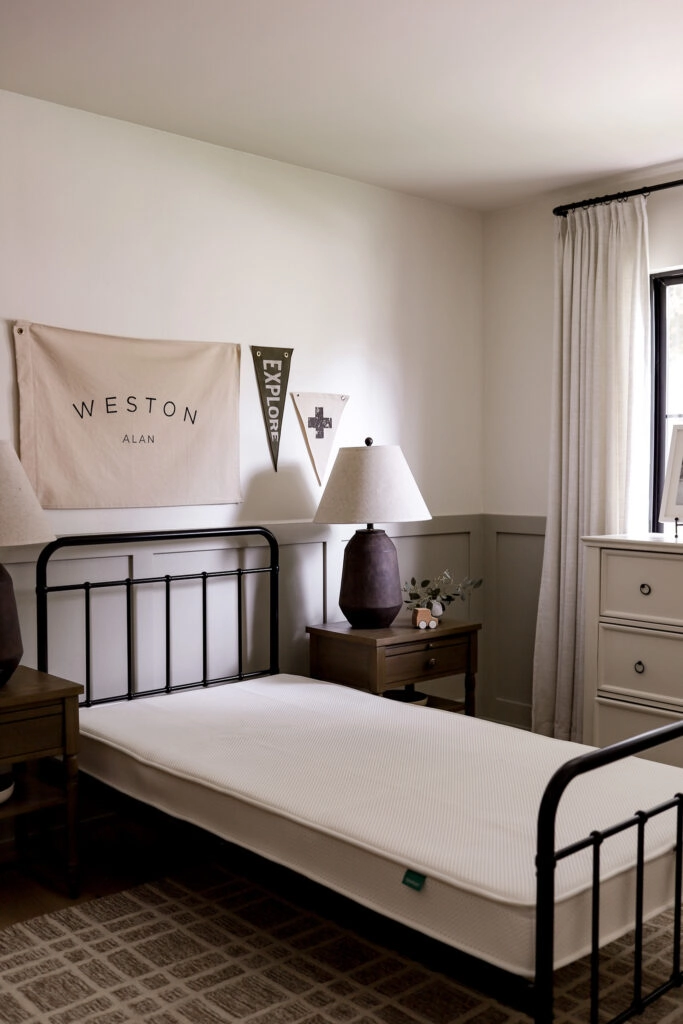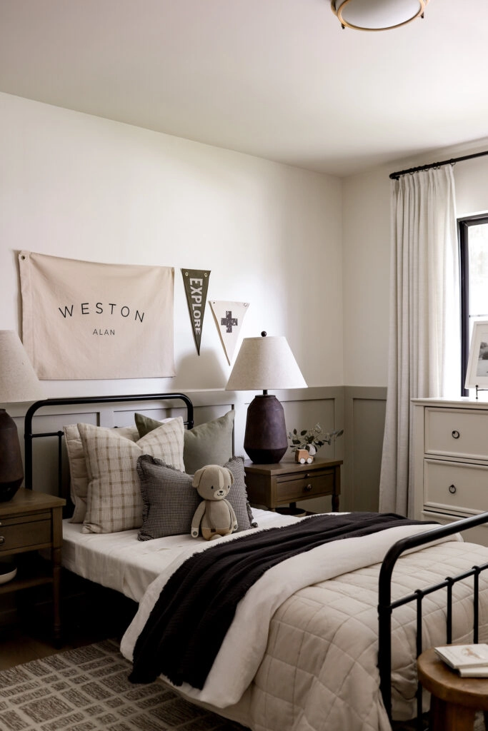 Next, add a linen duvet cover to elevate the overall aesthetic. Linen’s breathability ensures your child stays comfortable throughout the year, while its clean and relaxed look brings an upscale feel to the room. A neutral color or subtle pattern can easily match a variety of room themes, offering flexibility as your child’s tastes evolve. It’s a simple yet effective way to create a high-end look without the need for constant updates.