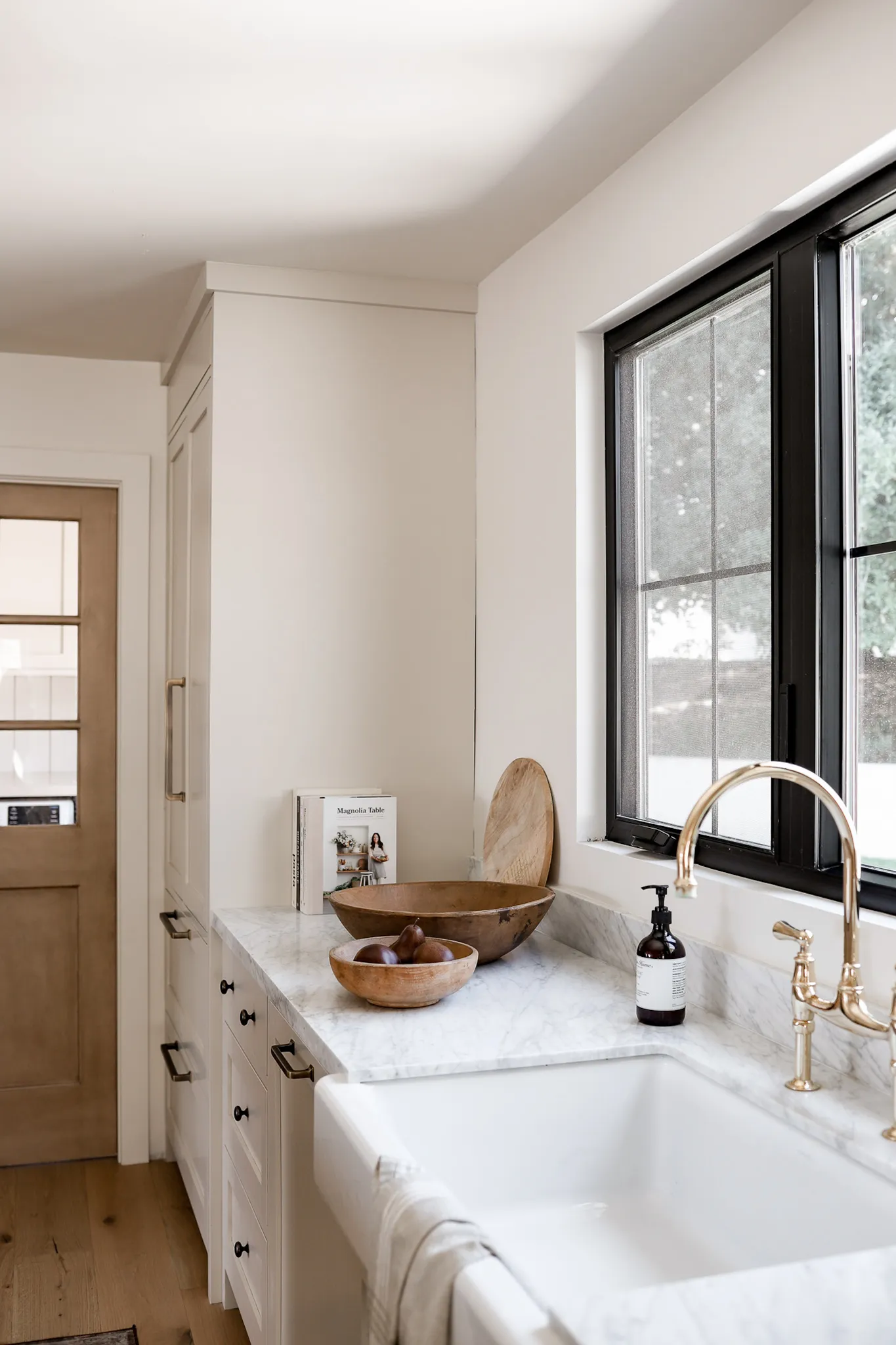 Round things out with a mix of wooden bowls. Large, chunky bowls are great for displaying seasonal fruit or serving bread, while smaller ones are perfect for holding everyday items or just adding a bit of warmth to your counters. The natural wood tones pair so well with the soft greenery and textured ceramics, tying the whole look together. With just a few key pieces, you can give your kitchen a fresh, spring-ready update without a big overhaul.