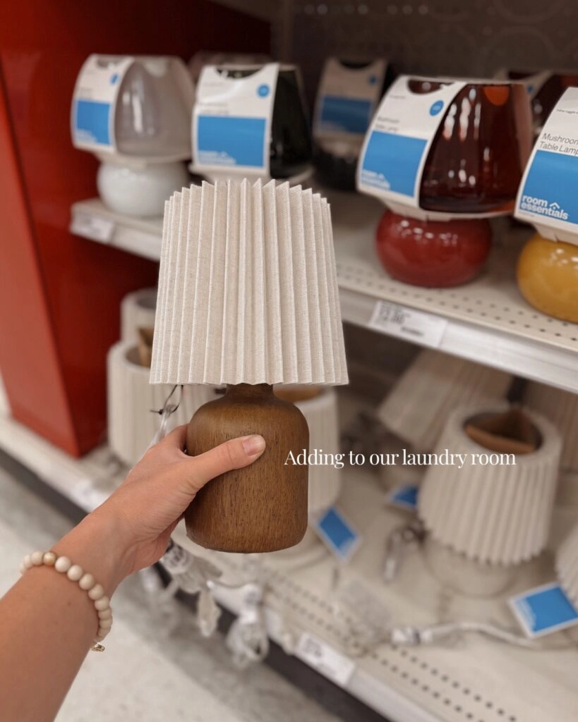 Because even laundry deserves a glow-up. This mushroom-style table lamp from Room Essentials is petite, neutral, and gives off the coziest light. I tucked it onto a shelf above our washer and dryer, and it instantly made the space feel more elevated.