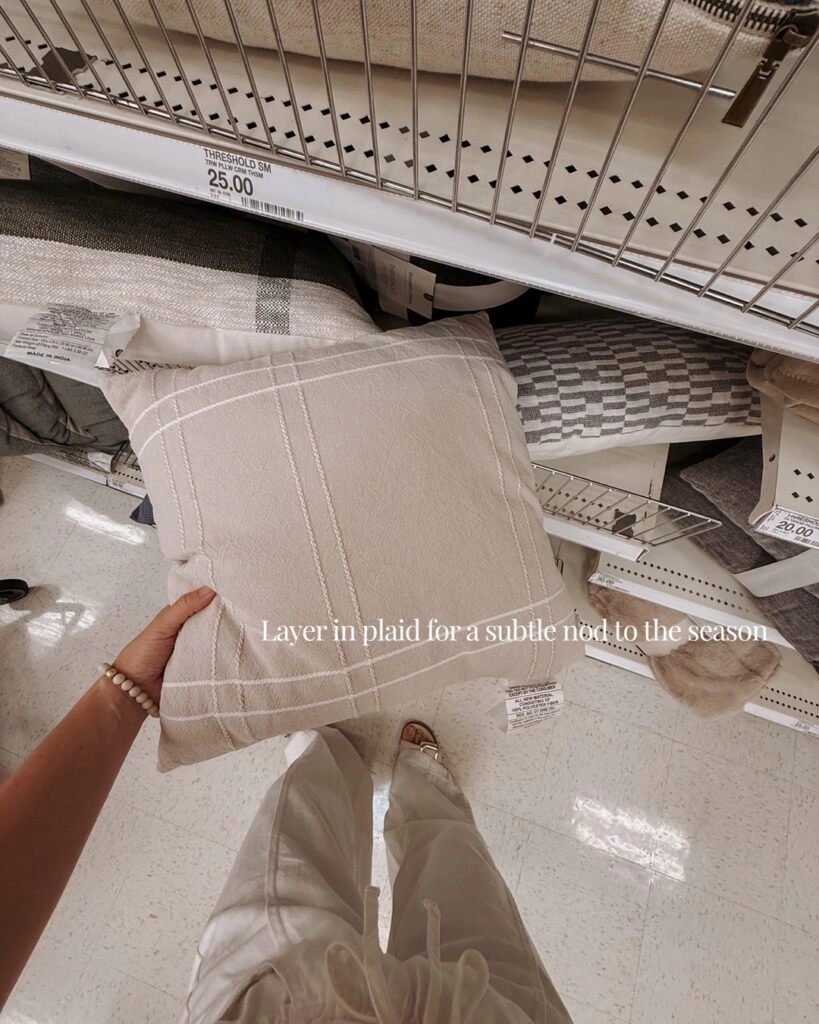 I grabbed this soft, neutral plaid pillow from Threshold that’s subtle enough for year-round use, but still gives a quiet nod to the fall season. It’s the kind of piece that feels cozy without screaming “pumpkin spice.” I layered it on our couch and love how it pairs with deeper tones and textures.