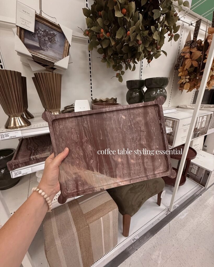 This marbled decorative tray instantly caught my eye. The deep wine tone adds richness to any setup, and I love using it to corral coasters, a candle, and a small vase on our coffee table. It’s one of those high-impact, low-effort pieces that pulls everything together.